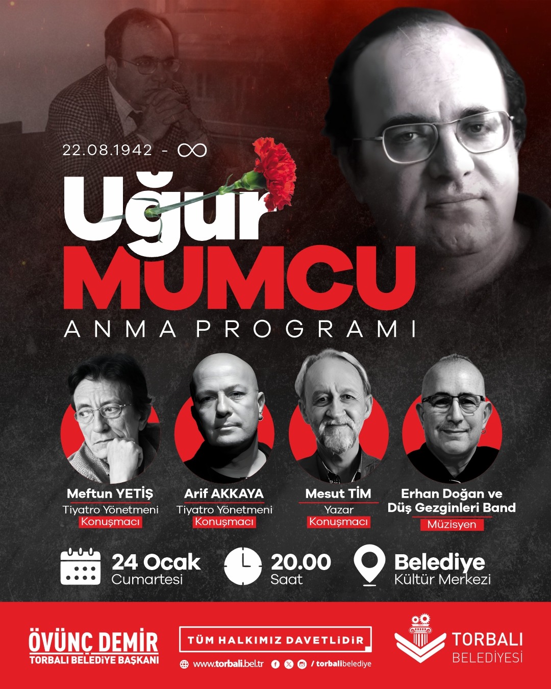 Gazeteci-Yazar Uğur Mumcu’yu katledilişinin yıl dönümünde saygı ve özlemle anıyoruz. Tiyatro Yönetmenleri Meftun Yetiş, Arif Akkaya ve Yazar Mesut Tim’in katılımıyla gerçekleştireceğimiz söyleşiye, Müzisyen Erhan Doğan ve Düş Gezginleri Band müzik dinletisiyle eşlik edecektir.